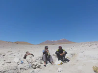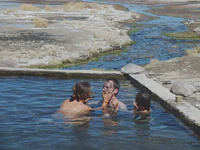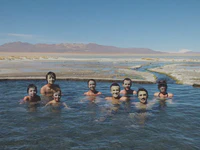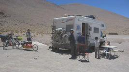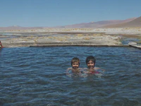 La chance nous sourit encore, même dans cette galère où nous devons chercher un moyen motorisé pour sortir du désert ! Le lendemain de notre abandon, la famille Charles et son camping-car passent près de là où nous sommes. Croisant Rémi et Jen qui ont déjà repris la route, ils n’hésitent pas, malgré leurs gros soucis mécaniques, à faire demi-tour pour nous sortir de notre mauvais pas. Mille mercis les amis !!! La fin du désert s’est plutôt bien passée. Grâce aux Charles, nous avons tout de même pu profiter des sites intéressants comme les eaux chaudes de la laguna Chalviri. Les Charles connaissent de grosses galères de moteur, arriver jusqu’à la frontière n’a donc pas été une mince affaire. On croise nos quarante doigts pour qu’ils puissent résoudre leurs problèmes très vite. Mais nous avons tout de même réussi à aller jusqu’à San Pedro d’Atacama au Nord du Chili.