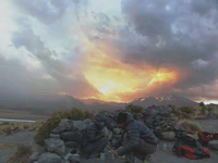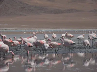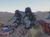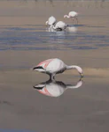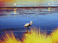 Nous passons la deuxième nuit au bord de la lagune. Comme depuis deux jours, il y a beaucoup de vent. La grêle s’en mêle aussi, puis la neige fondue. La nuit va être froide, il faut protéger les appareils électroniques du froid en mettant, par exemple, les batteries dans les duvets. Olivier met dans le sien le filtre à eau, qui est en céramique et présente un risque de casser si l’eau à l’intérieur vient à geler. Plusieurs nuits de suite, les températures vont chuter au-delà de -10°C à l’extérieur et vers 0°C à l’intérieur. Aglagla ! Au matin, le ciel est pur, les flamants roses sont déjà là à fouiller la vase. Mais où dorment-ils par ce froid ?