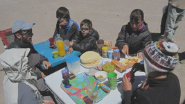 C’est assez amusant, nous nous sentons un peu comme des électrons libres car la très grande majorité des gens qui s’arrêtent voyagent en tour organisé. Nous mesurons pleinement le bonheur de voyager à notre rythme, et non pas au pas de charge comme tous les tours le font. Nous faisons quand même la connaissance d’un des couples les plus épatants que nous ayons rencontrés : Ilse et Reiner, couple d’Allemands qui sont en voyage en Bolivie pour y fêter leurs… noces d’or !!! Ils ont 73 ans, et ce sont encore de bonnes têtes brûlées qui voyagent seulement tous les 2, en 4x4. On espère avoir la même pêche qu’eux quand nous aurons leur âge ! Nous retrouvons aussi par hasard Wim, Néerlandais déjà croisé à Cuenca, Équateur.