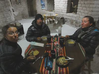 Ça a été une renaissance : un vrai lit, une bonne douche chaude, pas de vent dans la face en permanence, une altitude plus décente, des températures estivales et du repos ! Le BON-HEUR ! Nous y avons redécouvert les joies de manger de bonnes choses, comme nous n’avions pas mangé depuis de nombreuses semaines : de la bonne viande, des légumes frais, des fruits, un bon dîner avec des amis… Aaaaaaah ! Le confort de la vie moderne ! L’eau courante et à volonté ! Des toilettes ! Un toit ! Toutes ces choses finissent par manquer.
