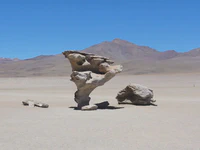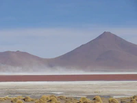 Cinquième jour. Dernier avant la pause prévue. La piste devient meilleure. Nous entrons dans le parc national Eduardo Avaroa, les 4x4 sont tenus de respecter le tracé de la route pour ne pas labourer toute la montagne. C’est bien plus agréable. Nous passons devant l’Arbre de pierre, curieuse formation rocheuse au milieu de tout ce sable. Et arrivons enfin, au terme d’une longue descente, à la Laguna Colorada. Ce lac contient des micro-organismes qui lui donnent sa couleur rouge si particulière à partir du milieu de journée. Nous avions prévu de faire ici une journée de repos car il y a un tout petit regroupement de maisons, dédiées au tourisme, et qui vont nous permettre d’avoir un lit, une douche chaude et à manger ! Cela fait du bien !