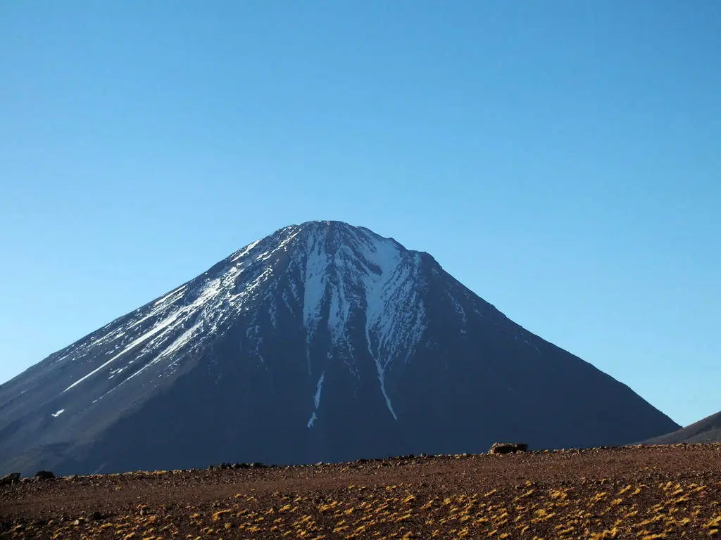 Le deuxième jour, c’est finalement plus soft. Nous finissons notre montée au premier col (4 200 mètres), puis redescendons vers la route internationale entre les quelques végétaux qui arrivent à se trouver une place entre les cailloux. Le paysage est incroyable, beaucoup plus montagneux, et clairsemé d’innombrables volcans. C’est sublime et de plus en plus sauvage. Lunaire. La végétation est de plus en plus timide, s’effaçant devant le minéral. Et nous, nous sentons de plus en plus petits et vulnérables. Nous retrouvons la route employée par les 4x4 de tourisme, qui sont vraiment nombreux et peu respectueux des lieux : chacun semble cherche sa nouvelle piste, et le paysage est lacérée de dizaines de traces parallèles les unes aux autres. Nous quittons la piste en bon état et retrouvons notre bon vieux chemin défoncé.