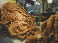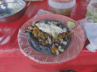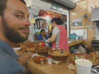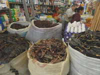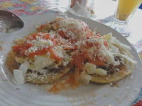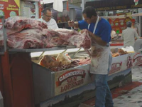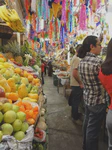 Nous avions envie de vous parler plus particulièrement de quelque chose que nous aimons beaucoup ici : les marchés. Très souvent, ce sont des endroits couverts, des halles, des dédales de petites échoppes colorées où l’on peut trouver beaucoup beaucoup de choses : des fruits et des légumes bien sûr, de la viande (têtes de cochon, demi-vache, abats en tout genre), des graines, des épices, mille et une sortes de piment, du cactus (appelé ici nopale), des fleurs de courgettes, des tortillas, des herbes médicinales, des crèmes de beauté aux Rayons-X (véridique), des DVD et consoles de jeux piratés, et encore beaucoup d’autres choses. C’est vivant, coloré, parfumé, parfois écœurant, mais c’est un vrai plaisir de s’y balader ! On y trouve des jus de fruits délicieux et on y mange de la vraie cuisine mexicaine pour 3 francs 6 sous. Pour un peu qu’on ait su préparer son système digestif (important, Olivier vous le répète), c’est délicieux !