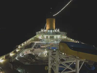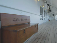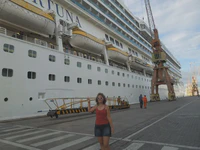Mais pour l’instant, faisons donc un bond en arrière dans le temps. Le 14 mars, nous embarquons à bord du Costa Fortuna. Ce mode de déplacement à vitesse modérée est vraiment inattendu, mais nous convient car il va nous permettre de revenir lentement. On est bien loin de l’état d’esprit nomade du voyage à vélo, mais au moins nous nous épargnons un retour express en avion… Nous prenons goût aux voyages à petite vitesse. Nous redoutons tout de même un peu l’univers de la croisière qui, nous le pressentons, ne va pas trop coller à notre mode de voyage. Essayons de vivre cette aventure comme une expérience ethnologique, et ouvrons tout grand nos yeux, nos oreilles et… nos esprits !