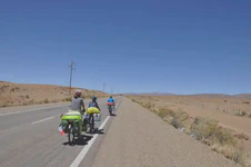 Au départ de La Quiaca, le lendemain, nous sommes de nouveau sur l’altiplano, en enchaîne les grandes lignes droites dans la pampa, le vent souffle fort et… contre nous. C’est beau mais c’est dur, il faut s’armer de patience. Heureusement, quelque chose nous motive, dont nous avons parlé aux enfants : dans quelques dizaines de kilomètres nous attend la descente de l’altiplano, 190 kilomètres pour passer de 3500 à 1300 mètres d’altitude (San Salvador de Jujuy). Nous espérons n’avoir qu’à nous laisser plus ou moins glisser jusqu’en bas. Pour cette première étape en Argentine, nous battons notre record de distance en une journée : 75 km, malgré le vent qui ne cessera de monter dans l’après-midi. Nous essuierons même une tempête de sable, gommage gratuit offert ! Les dents croustillent mais la peau est douce. Le lendemain, après une belle dernière montée, nous quittons définitivement l’altiplano et arrivons au dernier col avant la descente : Très Cruces. On jubile, on a hâte de profiter de ces kilomètres faciles !