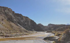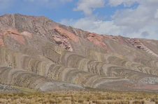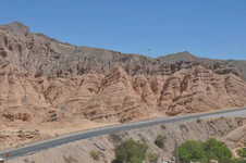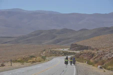 Là, si vous avez bien suivi jusqu’ici, vous devez vous demander : « Mais c’est quoi l’Arnaque du Siècle ??? ». Parce que bon, jusqu’ici, tout va bien. Eh bien, l’arnaque du siècle, c’est justement cette descente. Depuis le col, jusqu’en bas, soit près de 190 km, nous aurons eu 13 km à peu près de véritable descente, à savoir sans avoir besoin de forcer sur les pédales pour avancer. Donc soit sans vent, soit avec le vent dans le dos. Tout le reste du temps, nous aurons eu un FORT vent de face qui nous a obligé à pédaler bien souvent malgré le dénivelé négatif. C’était frustrant mais ça nous a quand même bien fait rigoler. Et surtout le paysage est resté superbe ! La géologie de la région doit être vraiment intéressante car ces montagnes sont fascinantes par leurs formes et leurs couleurs.