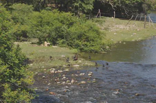 Grâce à une journée de pause pluvieuse au camping El Refugio de Yala, nous (re)découvrons le rythme de vie des Argentins au camping : lever vers 7h12, on allume évidemment direct la musique, si possible à un volume sonore élevé histoire d’être sûr de ne pas entendre de silence. 7h13, on allume le barbecue en prévision des 15 kg de viande à faire cuire pour le petit déjeuner. Toute la journée : on alterne baignade, grosse rigolade et… barbecue évidemment ! 22h00, on monte le son encore plus fort pour être sûrs de ne pas respecter l’interdiction de faire du bruit après 21h30, 3h00, on est fatigué, on va se coucher. Et le lendemain : on recommence. Et on exagère à peine… Les trois jours suivants sont du pur délice. On traverse rapidement San Salvador de Jujuy, où à part trouver de bons empanadas, nous n’avons pas grand-chose à faire. On installe le bivouac au bord d’une petite rivière avec un couple de cyclistes Colombiens rencontrés sur la route le jour même.