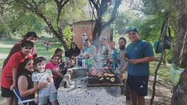 Le jour suivant, la route nous mène sur de magnifiques lacets en pente douce à travers la forêt humide. Le soleil brille, nous roulons à l’ombre de grands arbres, c’est magnifique. Quel changement d’ambiance comparé aux canyons arides d’il y a quelques jours ! En milieu de journée, nous atteignons un petit camping avec piscine comme nous l’avions promis aux enfants. Pas de bol, impossible de trouver de quoi faire des courses sur notre route… Nous déjeunons de succulents petits crackers bien secs à la confiture ! Mais pendant qu’Olivier part faire quelques cours au village d’après, nous sommes très chaleureusement invités par une famille argentine voisine qui prépare son barbecue dominical. Devant les kilos de viande en préparation, Nahuel a les yeux qui brillent. Nous passons donc tout notre après-midi avec la famille Sosa. C’était super, quel accueil et quelle spontanéité, ce sont vraiment des moments de partage à l’improviste comme on les aime !