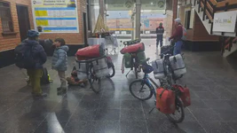 Nous profitons principalement du séjour à Uyuni pour avancer sur le travail scolaire, dormir, faire un peu d’entretien et de réparation de vélo (Sofia ayant cassé des rayons sur sa roue arrière) et manger ! Des papas rellenas (pommes de terre farcies), empanadas saltenas, salades de légumes et même… du brocoli pour le plus grand plaisir des enfants ! Puis, alors que nous regardions pour la suite du programme à vélo vers la frontière, nous prenons connaissance de l’existence du ferrobus ! Pour ceux qui comme nous ne connaîtraient pas, imaginez un bus, un simple bus, bricolé pour pouvoir circuler sur des rails de train. Capacité : 30 personnes. Nombres de passages par semaine : 1. C’est un concept. Cette ligne de ferrobus circule entre les villes de Oruro au nord et Villazon à la frontière. Deux petits soucis cependant : alors qu’une employée de la gare nous avait informé que le train ne circulerait pas le mardi de cette semaine pour cause de jour férié, nous nous rendons compte qu’il est possible d’acheter sur internet des billets pour cette même date. Nous n’arrivons également pas à savoir s’il est possible de monter à bord avec notre barda et nos vélos. Mais comme on est joueurs, on achète les billets et attendons deux jours de plus. Et, le dit mardi matin, nous sommes à la gare à 5h30 sans savoir si nous pourrons monter dans ce fameux ferrobus, ni même s’il va passer. Au pire, on est prêt à pédaler exceptionnellement tôt !