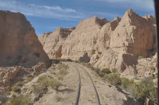 Et finalement, contre toute attente, tout se passe très bien. Le ferrobus arrive (à l’heure !), nous chargeons tous nos bagages à l’intérieur sans aucun problème, les employés du ferrobus (le chauffeur, le mécanicien et son aide) nous aident très gentiment à charger les vélos sur le toit sans demander de supplément, nous montons dans ce tout petit mode de transport presque uniquement occupé par des boliviens, et nous partons (à l’heure !). Nous quittons la ville d’Uyuni en direction de Tupiza pour un trajet exceptionnel ! Les cinquante premiers kilomètres, la ligne de chemin de fer traverse une vaste plaine. Nous avons la chance de voir de nombreux troupeaux de lamas, de vigognes, mais surtout des nandous (sorte d’autruche), des viscachas (espèce de rongeurs) et même quelques flamants roses au loin. Puis, rapidement, le ferrobus se dirige vers des montagnes et nous nous y engouffrons. Là commence un trajet digne d’un petit train du far-west. Les rails serpentent au sein de paysages incroyables : canyons, montagnes colorées, ravins, etc. Parfois, il faut avoir le cœur bien accroché, quand on passe sur un petit pont de bois qui semble ne pas tenir sur grand-chose, ou qu’on aperçoit, là tout en bas, les vestiges de l’ancienne voie ferrée tombés dans la rivière à cause de la forte érosion ! Sujets au vertige s’abstenir…
