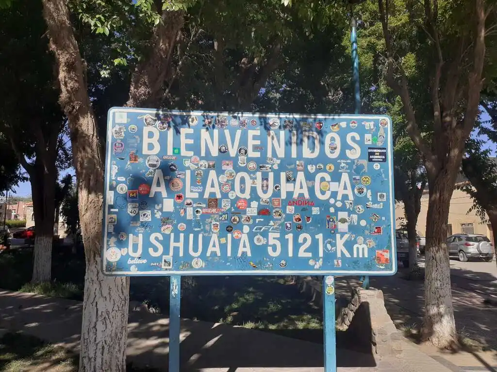 Le lendemain, dernière journée en Bolivie. Nous terminons laborieusement la belle montée entamée la veille, et filons vent de dos, sur un paysage qui est redevenu à peu près plat, jusqu’à Villazon pour nos derniers kilomètres en Bolivie. Arrivés en milieu d’après-midi, nous préférons attendre le lendemain pour passer sereinement la frontière. Nous entrons donc en Argentine le samedi 15 novembre par la frontière de La Quiaca, un peu tristes de quitter la Bolivie mais heureux de commencer à découvrir un nouveau pays ! Dès la frontière, on ressent une différence assez forte avec la Bolivie : en quelques centaines de mètres, on ne voit presque plus de cholitas avec leurs jupes volumineuses, place au combo jeans – T-shirt, plus de collectivos remplis à ras bord de personnes et de marchandises sur les routes mais des voitures particulières ! On ne se presse pas à La Quiaca, le temps d’acheter une nouvelle carte SIM pour le téléphone, d’essayer de trouver de l’argent liquide en essayant de ne pas trop se faire avoir sur les taux de change (mission impossible en Argentine !), de faire quelques courses, etc. C’est samedi, et samedi à La Quiaca, c’est jour de feria, avec notamment plein de petits stands d’empanadas, de salades de fruits et de fraises à la crème chantilly. On avait peur que les prix soient clairement plus élevés qu’en Bolivie, mais sur ces stands, ça reste très correct. Les prix seront sûrement plus élevés au sud, alors… on se fait plaisir ! On est gourmand… A force de traîner, de parler avec plein de curieux et d’autres cyclos qu’on croise, il finit par être un peu tard, et on décide de rester dormir à La Quiaca. Nous dormons dans un petit hostal où on se fait inviter par les proprios à un barbecue. Première nuit en Argentine, premier barbecue : le ton est donné !