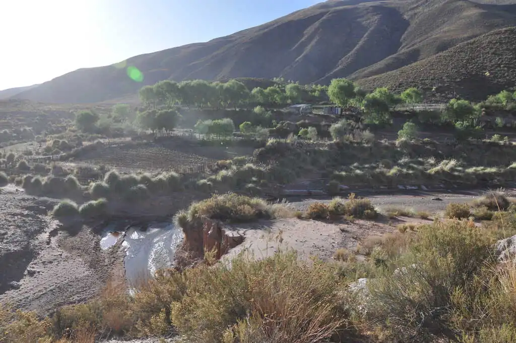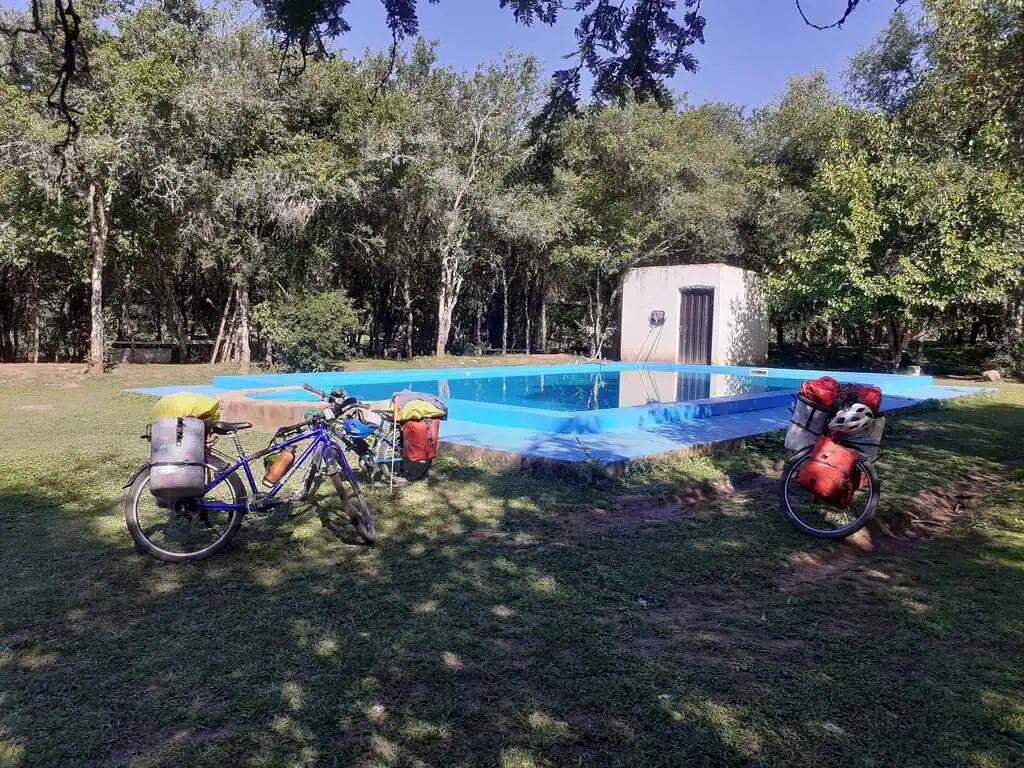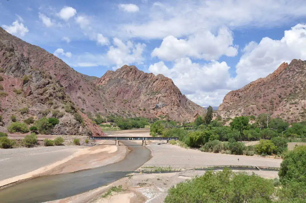 Grâce à une journée de pause pluvieuse au camping El Refugio de Yala, nous (re)découvrons le rythme de vie des Argentins au camping : lever vers 7h12, on allume évidemment direct la musique, si possible à un volume sonore élevé histoire d’être sûr de ne pas entendre de silence. 7h13, on allume le barbecue en prévision des 15 kg de viande à faire cuire pour le petit déjeuner. Toute la journée : on alterne baignade, grosse rigolade et… barbecue évidemment ! 22h00, on monte le son encore plus fort pour être sûrs de ne pas respecter l’interdiction de faire du bruit après 21h30, 3h00, on est fatigué, on va se coucher. Et le lendemain : on recommence. Et on exagère à peine… Les trois jours suivants sont du pur délice. On traverse rapidement San Salvador de Jujuy, où à part trouver de bons empanadas, nous n’avons pas grand-chose à faire. On installe le bivouac au bord d’une petite rivière avec un couple de cyclistes Colombiens rencontrés sur la route le jour même.