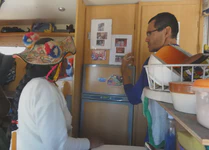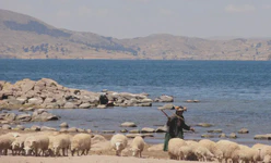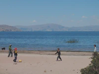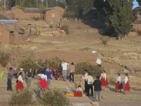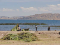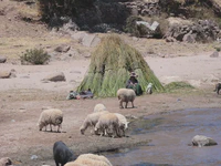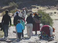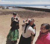 Ça nous fait toujours bizarre de faire la route en moyen motorisé, la route y perd toute sa valeur, seule la destination revêt de l’importance. Mais c’est tout de même agréable de se déplacer sans effort. Nous avons choisi de passer notre séjour au bord du lac en compagnie des Charles, et c’était très bien ainsi. D’abord, parce que nous avons passé un excellent moment avec des amis. Et puis parce qu’ils nous ont emmené dans un endroit que nous n’aurions pas trouvé seul : nous avons atterri sur la presqu’île de Llachon, loin de la route et des circuits touristiques ordinaires. Llachon est un petit village de pêcheurs, loin de la grande et touristique Puño. Sa caractéristique est d’accueillir des touristes en groupes organisés : ils arrivent dans l’après-midi et chacun est réparti dans une famille d’accueil pour la nuit. Pour en avoir parlé avec une habitante, c’est pour eux une bénédiction du ciel. Cela leur permet de vivre avec un peu plus de revenus, et la plupart tirent une certaine fierté à ce que des étrangers s’intéressent à leur mode de vie. Nous nous sommes donc posés devant leur petit port, et avons pu discuter avec ces gens vraiment accueillants de leur façon de vivre et de leur culture, qu’ils protègent et tentent de transmettre avec passion à leurs enfants.