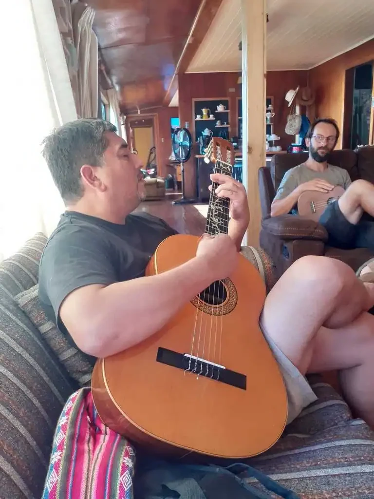 Au bout de six jours sur place, les plaies de Sofia ont cicatrisé, son genou retrouve un peu de souplesse, nous allons pouvoir repartir ! La veille de notre départ, nous nous rendons tous ensemble à une fiesta costumbrista, fête estivale avec nourriture locale (empanadas, mote con huesillo, casula, etc.) et musique locale (chapeau de cow-boy, vestes à paillettes, chorégraphie à mourir de rire, ligne de basse à quatre notes, invariable) pour finir en beauté ce séjour improvisé. Merci mille fois pour cette semaine géniale avec vous Pamela et Henry, on vous attend quand vous voulez en France !