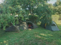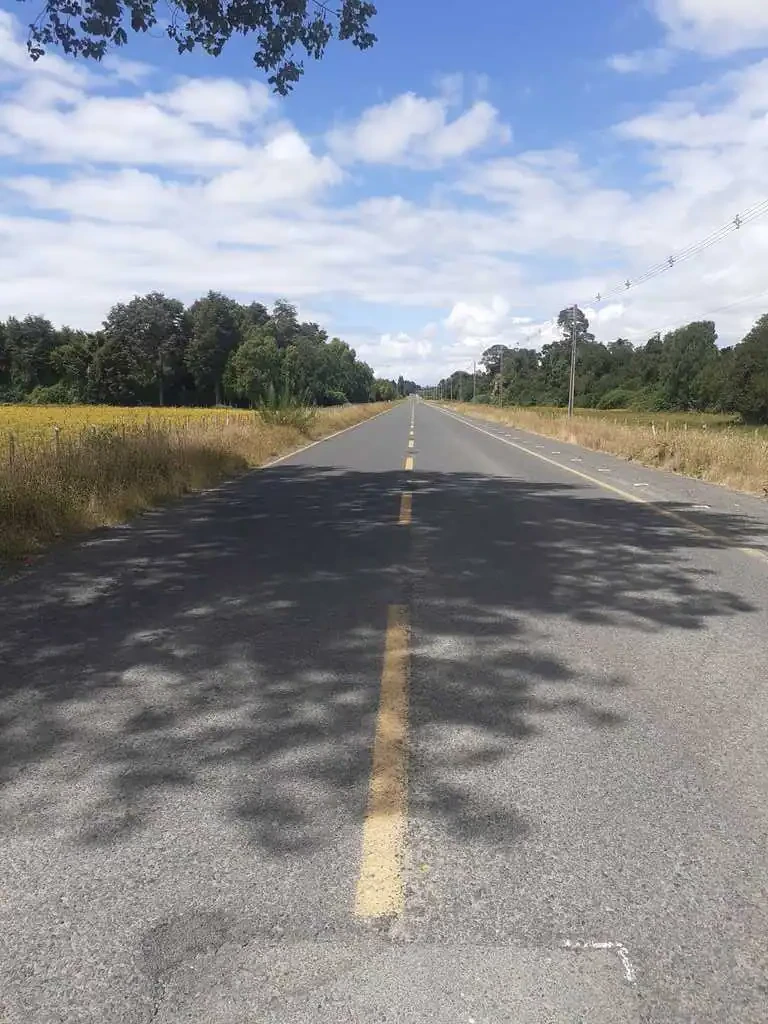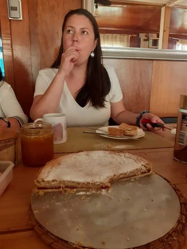 Les trois derniers jours, on arrête les bêtises et on accélère vraiment pour enfin arriver à Puerto Montt (nous passons la seconde). La route est de moins en moins tranquille au fur et à mesure que nous nous approchons de la ville. On arrive à avoir encore de beaux panoramas sur le lac Llanquihue, avec en arrière-plan les volcans Calbuco et Osorno, sentinelles imposantes du deuxième plus grand lac du Chili. La dernière nuit avant d’arriver à Puerto Montt, nous faisons encore une belle rencontre. À la recherche d’un lieu où poser la tente, nous tombons par hasard (ce fameux hasard) sur Hector, qui vit chez ses parents Rosa et Armando. Soucieux que nous soyons bien installés ce soir, ils nous invitent à camper dans leur jardin. Et, comme très souvent, nous voici aussi invités le plus naturellement du monde à pouvoir utiliser les sanitaires dans la maison, puis à partager la once (le goûter-dîner) qu’ils ont préparé pour nous. Nous passons donc encore une fois la soirée à parler avec ces inconnus, mais avec qui nous échangeons sur nos vies respectives. C’est vraiment génial d’avoir ces opportunités, de pouvoir découvrir la réalité des habitants des pays que nous traversons, aussi divers soient-ils. C’est vraiment la façon de voyager que nous aimons. Le lendemain, nous repartirons avec un sachet de biscuits au miel et une tablette de chocolat : nous sommes invités et en plus nous repartons avec des cadeaux !