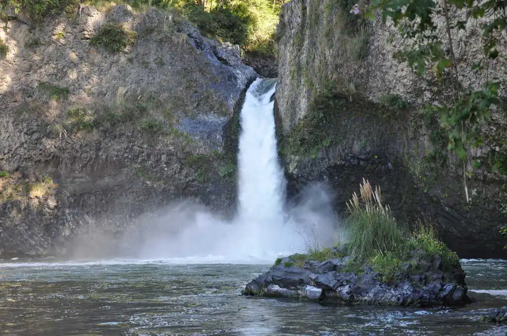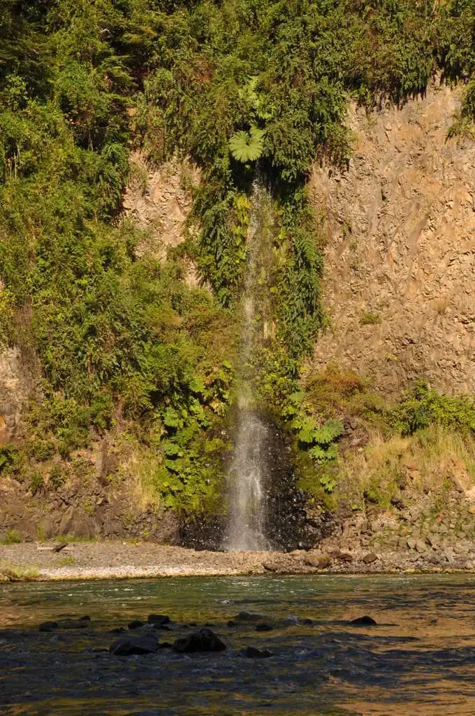 Nous reprenons la route à 16h avec encore 20 km de prévus pour atteindre notre objectif du soir : les chutes de Nilahue. Mais on commence à être rôdé, la route est totalement asphaltée, ça roule bien malgré un peu de trafic et un beau mur à mi-parcours. Et le soir, quelle récompense de pouvoir camper à côté de cette belle chute d’eau ! Nous voyons beaucoup de chutes très similaires dans cette région à l’activité volcanique passée et présente active : une rivière qui s’écoule sur une ancienne coulée de lave, forme un relief, puis se jette du haut d’une cassure dans cette ancienne coulée, où sont tout le temps visibles des orgues de basalte. Ce mélange d’eaux bouillonnantes et de roches volcaniques aux formes étonnantes, c’est toujours magique ! Au petit camping à la ferme où nous dormons, juste au-dessus des chutes, les enfants se font des copains. Et c’est parti pour une journée de pause vélo ! Nous avions promis au médecin de redémarrer doucement. La deuxième nuit, vers 22h30, alors que les enfants dorment, Sofia se réveille en hurlant en nous disant qu’elle a quelque chose dans l’oreille et que ça lui fait très mal. Petit moment de stress, on ne voit pas grand-chose dans son oreille mais elle continue à nous dire qu’elle entend que ça gratte dedans. Relativement impuissants, nous tentons les gouttes anti-douleurs dans l’oreille. Elle se calme et se rendort mais il faudra quand même vérifier tout ça.