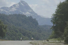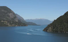 Le jour d’après, nous arrivons à Bariloche et trouvons notre solution qui, bien qu’un peu chère, nous parait bien alléchante. À l’Ouest de Bariloche existe une frontière, mais qui n’est atteignable qu’en bateau. Une compagnie de transport organise des traversées de Bariloche vers Puerto Montt (Chili) grâce à une succession de bateaux et de transport en bus. Mais le voyage est cher et contraignant pour nous. Heureusement, grâce au nombre considérable de cyclos qui doivent passer par là, il existe une formule spéciale cyclistes qui comprend les transports en bateau et où les parties en bus se font en vélo. Le top ! En plus, le temps est au beau fixe : les trajets en bateau entre les espèces de fjords risquent d’être splendides !