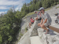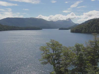 Le lendemain, nous atteignons le grand lac de Nahuel Huapi, monstre magnifique nichée entre les montagnes. Suivant l’état du ciel ou de la profondeur (de quelques mètres à 464 mètres au plus profond !), l’eau prend toute sorte de teintes superbes. Les environs du lac complètent la magie du lieu : montagnes, glaciers, dents de granit… Tout ça incite à la contemplation ! Nous continuons donc la route, mais décidons de nous installer dans un petit camping loin de tout sur les berges du lac. Nous y arrivons tôt, nous avons donc le temps : douche dans le lac, lavage des vêtements, séchage au soleil, barbecue… C’est si simple, que demander de plus ???