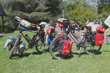Nous poursuivons notre route vers le Nord. Après les Pyrénées, le Gers et ses collines. La campagne française est belle, nous sommes heureux d’y rouler. À Mauvezin, nous faisons la connaissance d’André, les quatre-vingt-sept printemps déjà passés. Après quelques minutes de discussion, André nous invite spontanément à passer la soirée et la nuit chez lui. Il a vu notre drapeau et sa carte des Amériques, qui lui ont de suite attiré l’œil. Cette rencontre, inattendue comme toutes les autres, nous touche spécialement. André vient à peine de perdre sa femme. Ils étaient mariés depuis plus de cinquante ans ! Il a besoin qu’un peu d’air frais entre dans sa maison pour s’évader de sa tristesse, et rêver un peu d’autres cieux. Alors avec nos mots et nos histoires, nous sommes ravis de faire s’illuminer les yeux de ce vieux monsieur. Son enthousiasme seul nous aurait largement récompensés. Mais il est tellement heureux de nous avoir chez lui qu’en plus de nous offrir un lit moelleux et une bonne douche, nous dînons au champagne, foie gras et magret de canard préparé par ses bons soins. Notre discussion se poursuit jusqu’à tard dans la soirée, André est intarissable de questions. Son enthousiasme et sa curiosité font plaisir à voir. On sent qu’il est sincèrement et profondément ému de partager ce moment un peu hors du temps avec nous. Il en est de même pour nous. Voilà pourquoi nous voyageons ! Pour des rencontres comme celle-ci, imprévues et imprévisibles, qui remuent le fond des tripes et font vivre des moments comme suspendu, persuadé que notre place est bien ici et nulle part ailleurs : à rouler sur nos vélos au milieu du désert bolivien, à apprendre à traire une vache avec un paysan mexicain, à rire avec des amis autour d’un feu au fin fond de la Patagonie chilienne, ou à échanger sur la vie avec un vieux monsieur français que nous ne connaissons pas et avec qui nous avons tant à partager…