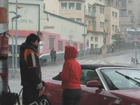 Mais voilà, il faut repartir. Le temps court, il ne nous reste plus que deux petites semaines pour rallier Barcelone à Nantes, avec un séjour prévu à Bordeaux. C’est un peu court ! N’ayant aucune envie de courir pour nos derniers kilomètres, nous optons pour un petit coup de pouce : nous prenons un train qui nous emmène jusqu’à Puigcerda, à quelques kilomètres de la frontière française. LA FRONTIÈRE FRANÇAISE ! Nous sommes contents, nous sommes début avril, nous allons pouvoir rouler sous le soleil printanier, retrouver notre pays en fleurs, les arbres déjà verdis de leurs jeunes bourgeons. Voila. C’était l’idée de base. Mais au fur et à mesure que le train grimpe à travers les montagnes, le doute nous prend. Pourquoi avons-nous l’impression d’avoir froid ? Hé mais ! C’est quoi ces flocons ??? Surprise : il neige ! Alors, nous devons avouer qu’on avait imaginé pas mal de versions pour notre retour, mais aucune ne comportait l’option neige. Bienvenue à la maison !
