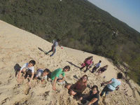 Notre route se poursuit vers Agen, puis nous longeons le canal du Midi, en direction de Bordeaux où nous arrivons le soir de notre sixième jour après le départ de Barcelone. Premières retrouvailles avec des amis, les yeux sont déjà un peu humides. Nous finissons notre séjour bordelais chez la famille Charles, qui sont rentrés chez eux depuis déjà un mois et demi. Puis on attaque le dernier tronçon en suivant la Vélodyssée le long de la côte Atlantique. Tout cela est très tranquille. Du soleil (enfin !), la mer, des routes vraiment tranquilles et sans aucune difficulté, les vacances somme toute ! Nous sommes scotchés par la notion de camping sur cette côte : plus aucune place pour planter la tente, il n’y a plus que des mobil-homes… Eh bien, on est mieux à dormir chez les gens.