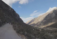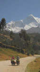 Le panorama est à couper le souffle, et d’ailleurs notre souffle se coupe, mais plutôt à cause de l’altitude. La piste qui monte au col et qui nous attend est monstrueuse : on dirait vraiment un mur de 1 000 mètres de haut, sur lequel les hommes se sont patiemment frayés un chemin. Plus nous montons, mieux nous pouvons contempler les sommets et glaciers qui commencent à nous entourer. Nous passons dans un autre univers, où tout n’est que minéral. Les plantes se raréfient, la place est libre pour les cailloux et le sable seulement. C’est extrêmement impressionnant. Nous nous arrêtons régulièrement pour reprendre des forces et pour admirer cet incroyable paysage. De notre vie, nous n’avons jamais été aussi haut. C’est magique !