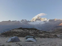 Après une bonne journée et déjà presque mille mètres de dénivelé engloutis, nous arrivons au petit village de Huachao, que les habitants semblent avoir déserté. Le vent est toujours là, nous commençons à bien nous refroidir, et l’idée d’une nuit dehors ne nous emballe pas plus que ça. Alors que nous cherchons un moyen de dormir dans l’école, une petite dame nous invite spontanément à dormir chez elle : parfait ! Nous profitons donc des derniers rayons du soleil les fesses posées dans l’herbe du jardin de Jenny. Les nuages se dissipent même, nous laissant enfin voir les sommets environnants, dont le superbe Huascaran, plus haut sommet du Pérou avec ses 6 768 mètres. Vivement le jour d’après !!!
