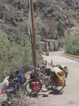 Deuxième jour de l’ascension. Nous prenons notre temps : il ne nous reste que 18 kilomètres jusqu’aux lagunes de Llanganucho où nous espérons bivouaquer. Erreur ! La pente est forte et la route toujours aussi mauvaise. Nous comprenons vite que la journée ne sera pas aussi facile qu’espéré. Nous arrivons enfin à l’entrée du parc national de Huascaran où un garde qui semble n’avoir jamais appris à sourire nous attend. Nous apprenons qu’il nous faut payer un droit d’entrée : 5 soles. Très bien, pourquoi pas si cela sert à protéger le parc. Sauf que… nous allons à priori rester plusieurs jours dans l’enceinte du parc, et que du coup il nous faut payer non plus 5 mais 65 soles !!! Nous sommes gringos quoi ! Nous avons de l’argent plein les poches, c’est évident ! En tout cas, c’est le raisonnement local…