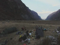 Troisième jour. L’excitation et l’appréhension sont à leur maximum ! Une très grosse journée nous attend, nous nous levons donc avant le soleil pour pouvoir partir au plus tôt. Il fait vraiment froid, il y a toujours du vent, le petit-déjeuner à l’avoine bouillie n’est pas des plus motivante… À 7 heures, les tentes sont pliées et nous sommes partis. Nous prenons vite de la hauteur malgré notre toute petite vitesse.