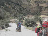 Après avoir replié le campement, nous redescendons doucement sur la piste toujours aussi difficile. Les arbustes pointent de nouveau le bout de leur nez, les températures s’adoucissent, le vert refait peu à peu son apparition, tout comme les hommes. Nous sortons enfin du parc et, en milieu d’après-midi, nous arrivons à Yanama.