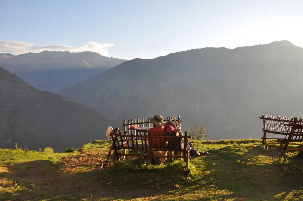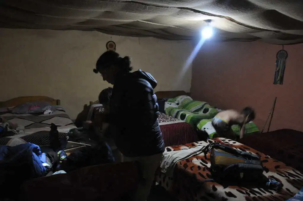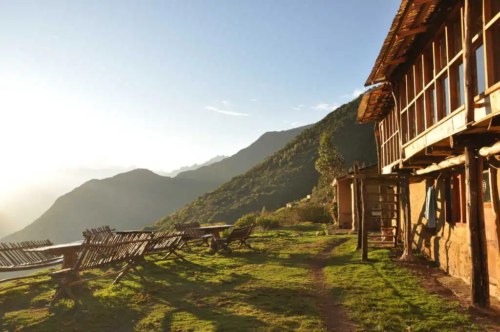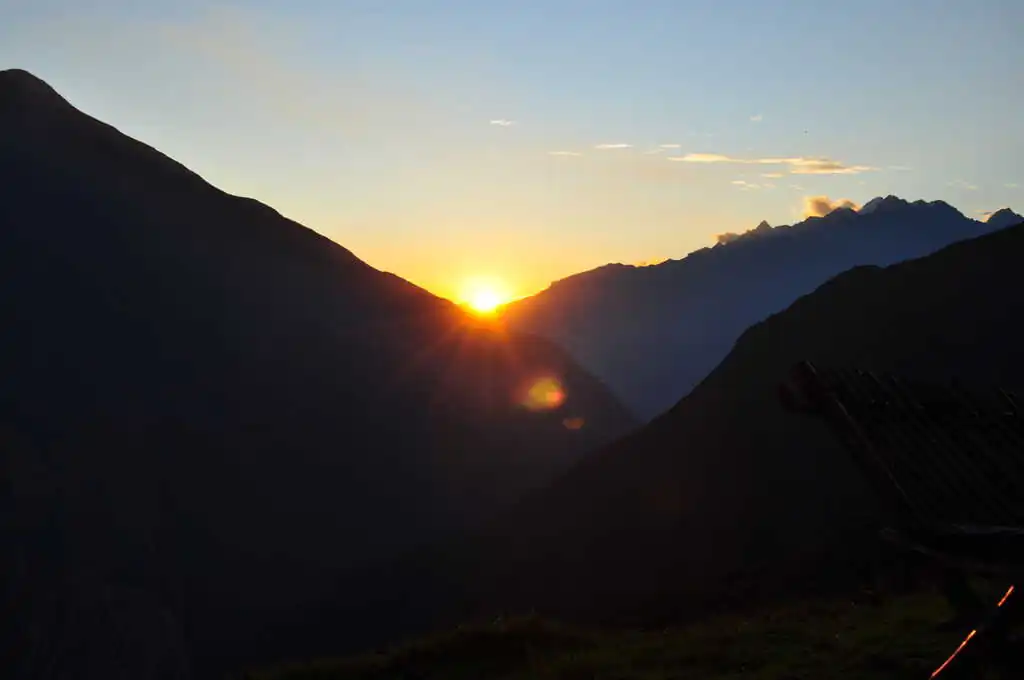 Heureusement, les 700 mètres de dénivelé restants se font beaucoup plus simplement. Non pas que la pente soit moins forte, mais au moins nous sommes à l’ombre du soleil qui est déjà passé de l’autre côté de la montagne. La végétation a changé, il y a pas mal de petits arbustes qui maintiennent un semblant de frais. Les filles sont à cheval et Nahuel est super endurant, il nous épate : il a marché toute la journée et a supporté tout ce dénivelé sans broncher et le sourire aux lèvres. Nous arrivons juste après le coucher du soleil à Marampata, nous sommes fatigués mais émus et fiers d’avoir réussi à monter jusque là. La vue est à couper le souffle (encore), nous restons époustouflés devant tant de beauté. Nous aurions pu rester assis par terre à contempler le canyon de l’Apurimac encore des heures, mais le froid et la fatigue nous ont jeté au lit très rapidement, non sans avoir englouti une soupe et un pollo a la plancha accompagné de sa purée.