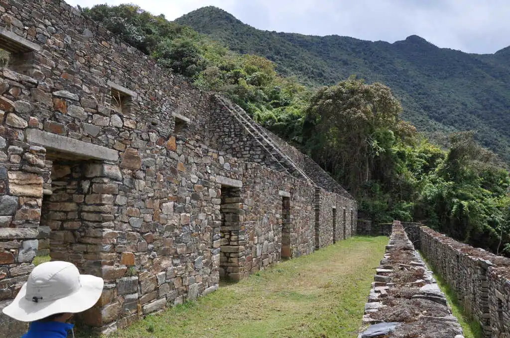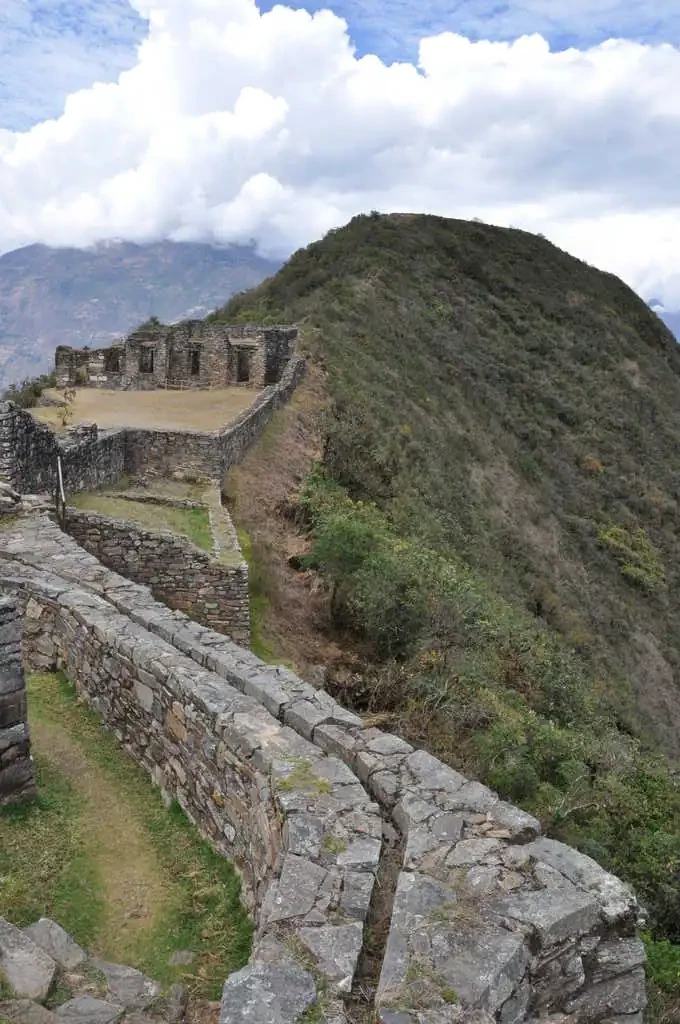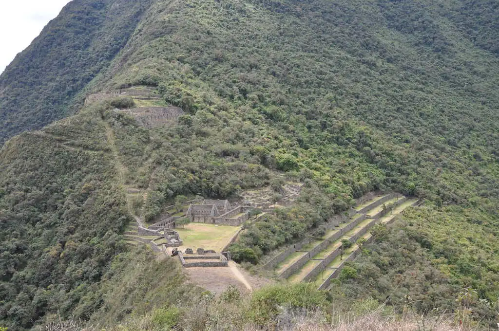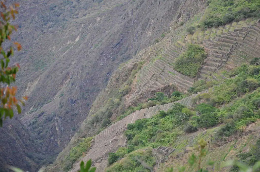 Enfin nous finissons par entrer dans la citadelle de Choquequirao ! Cette ancienne cité Inca, dont le nom signifie « berceau de l’or » en quechua, est très similaire par son organisation au Machu Picchu. On estime qu’elle est cependant beaucoup plus grande que ce dernier : 70 % du site serait encore enfoui sous la végétation. On pense qu’elle a servi de refuge et de lieu de résistance aux derniers incas réfugiés depuis Cusco lors de son siège par les Espagnols. Elle a été édifiée sur un éperon rocheux qui permet d’avoir une vue extraordinaire sur le canyon de l’Apurimac, idéal pour surveiller d’éventuels envahisseurs. Son isolement rajoute au côté mystérieux, et en tout cas cela nous a permis une visite quasi privée car nous n’avons pas croisé plus de 20 personnes sur le site de toute la journée ! Nous avons passé quelques heures à déambuler dans les ruines en compagnie de Angel, notre guide, qui nous a permis de mieux comprendre le site, des terrasses bâties sur des pentes à la déclivité impressionnante aux greniers, en passant par la place centrale, les lieux de culte et les réseaux d’irrigation. Nous avons même eu un énorme coup de chance : nous avons pu observer trois condors, dont un est passé à peine à 10 mètres au-dessus de nos têtes. Nous sommes tous restés bouche-bée, guide inclut ! Bref, une visite vraiment inoubliable !