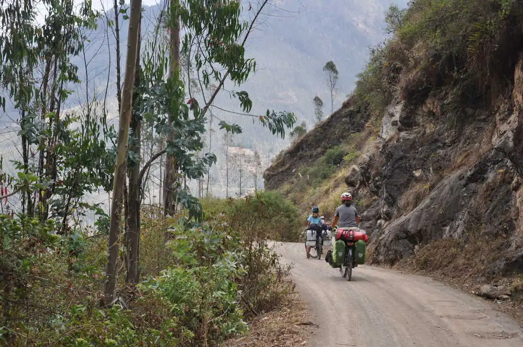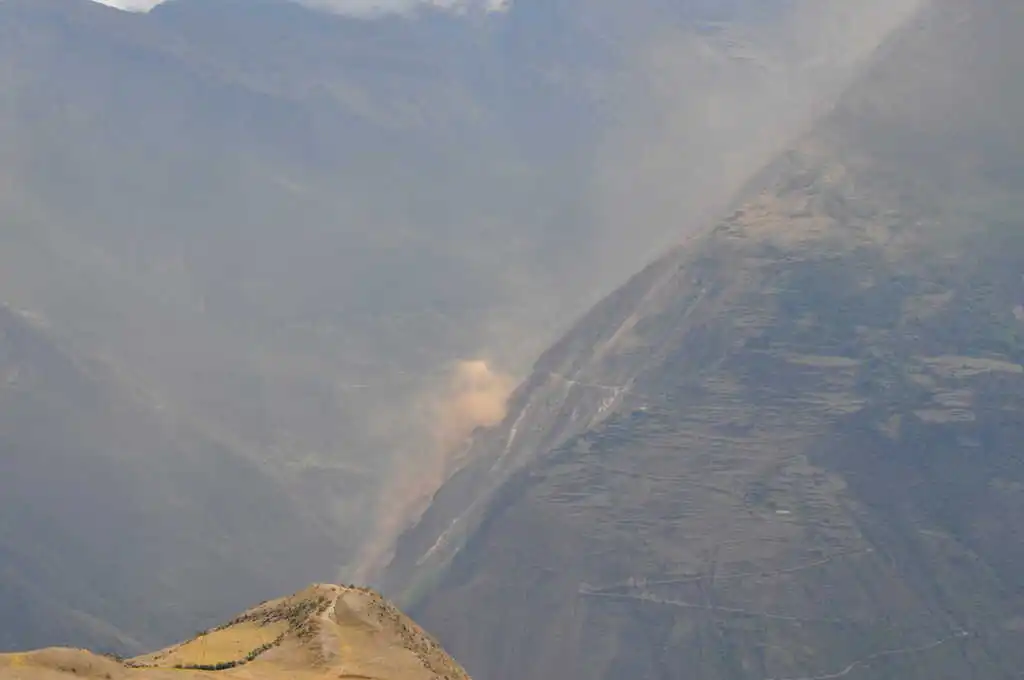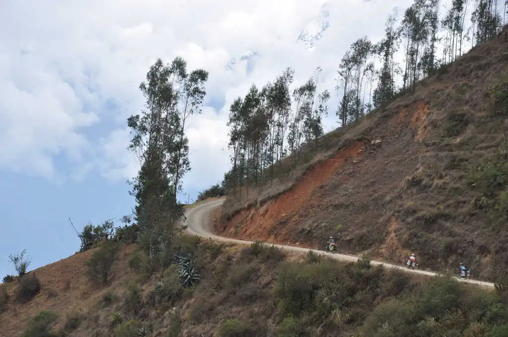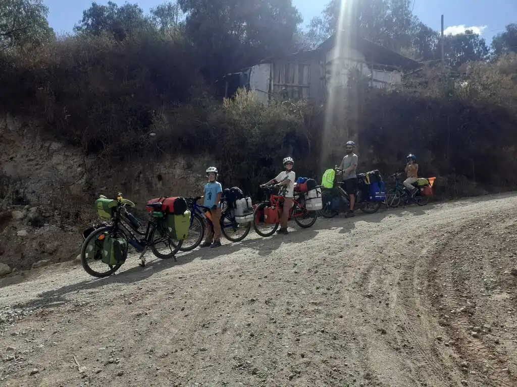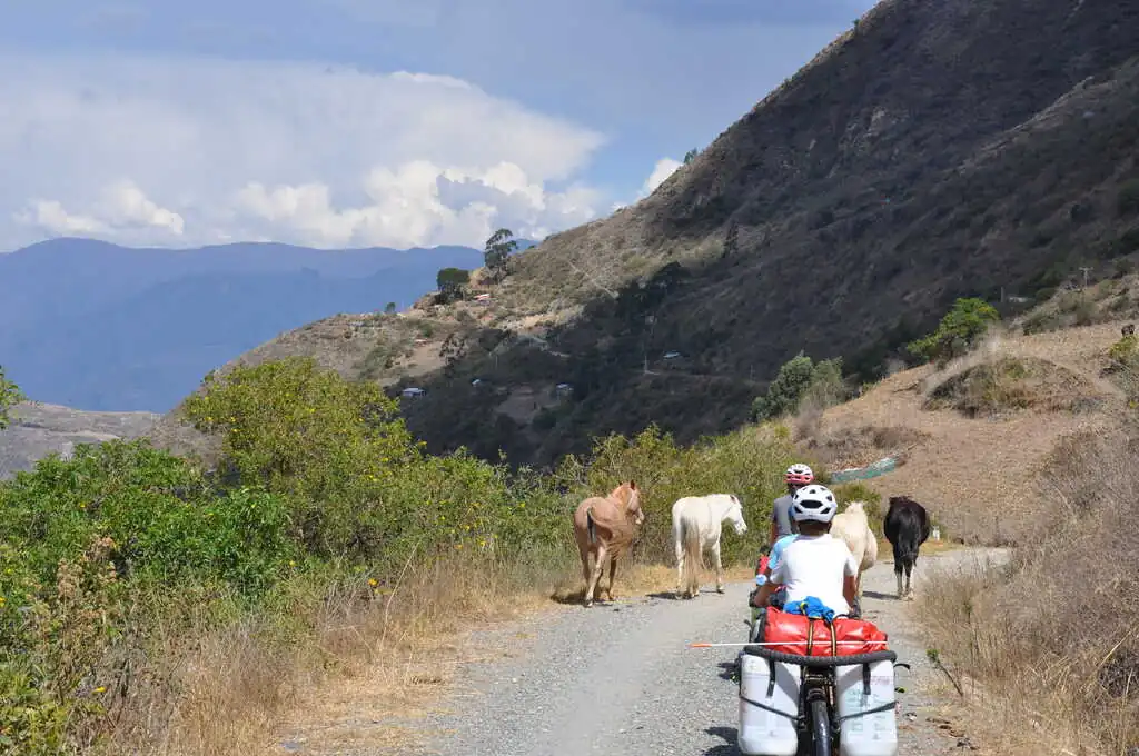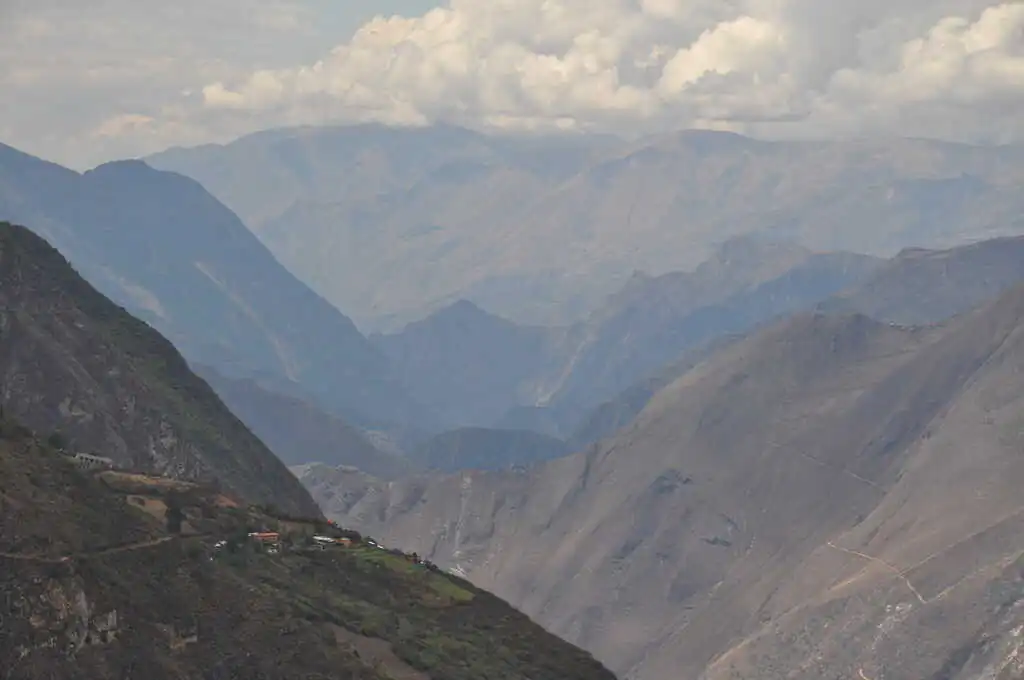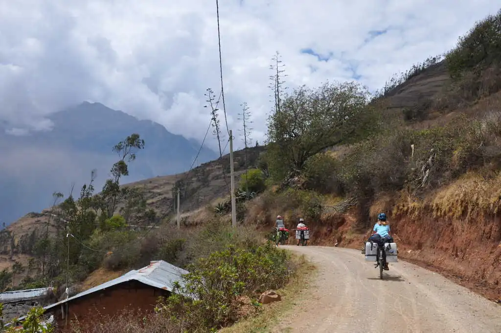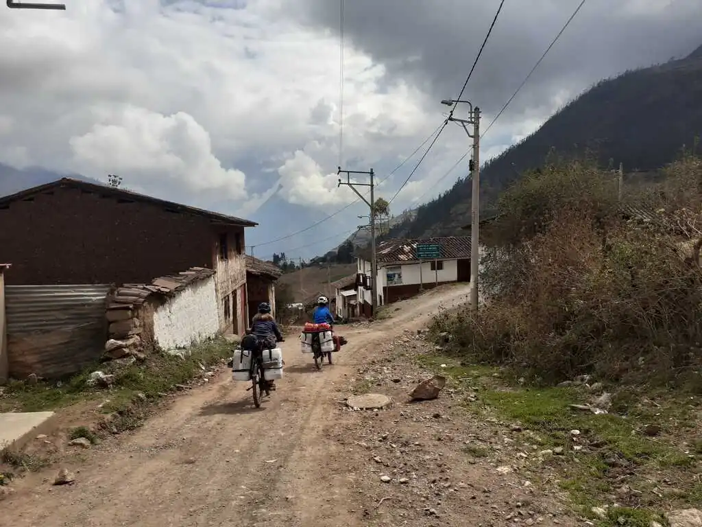 Après une journée de repos à Cachora, nous reprenons la route en empruntant, pour la première fois du voyage, une piste de ripio (ie. route non goudronnées, plus ou moins caillouteuse, percée de nid de poules et dans ce cas-ci de fissures). Le profil de dénivelé n’était pas spécialement impressionnant sur le papier… mais il n’était pas spécialement juste non plus. Avec la fatigue accumulée, on se retrouve sur cette petite route à fortes pentes où l’on doit pousser les vélos en se relayant, et c’est dur ! Mais la contre-partie, c’est de pouvoir prolonger le plaisir de parcourir le canyon de l’Apurimac jusqu’à son entrée au niveau de la ville de Curahuasi, un régal ! Encore des vues époustouflantes, des montagnes abruptes et des pentes incroyables surplombées de hauts sommets enneigés.