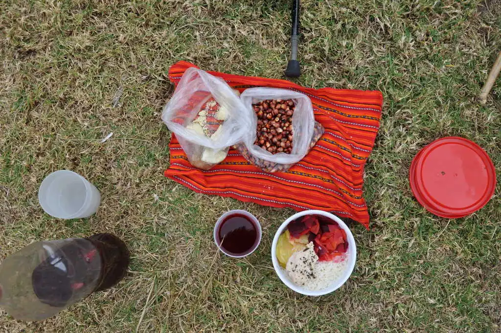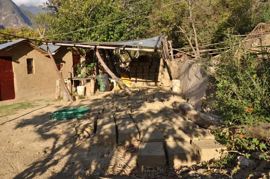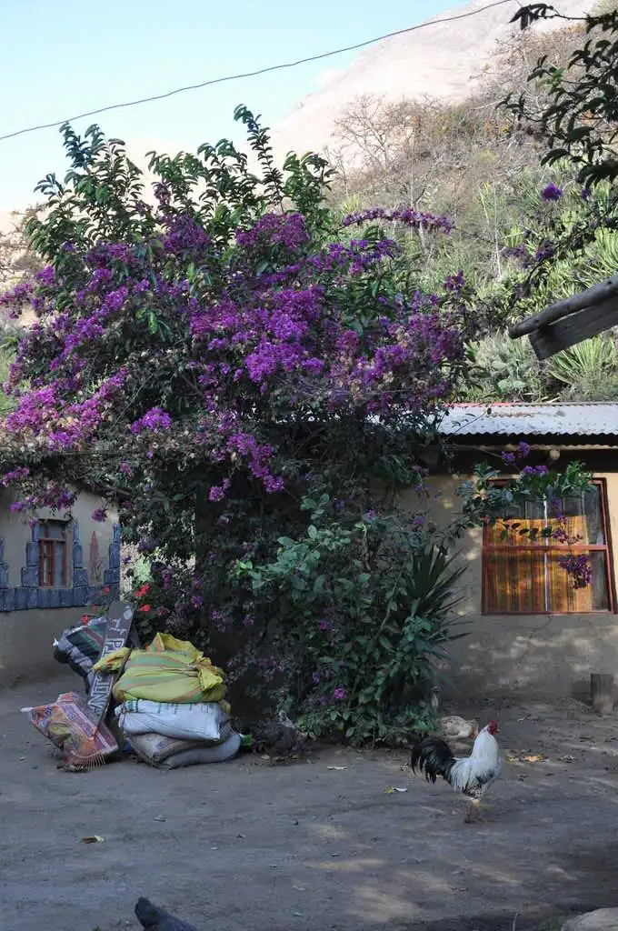 7 km après le passage du col au-dessus d’Abancay, nous avons donc quitté la route qui aurait dû nous mener à Curahuasi et avons bifurqué pour faire notre “petit” détour par Choquequirao. Première étape : le petit village de San Pedro de Cachora où nous arrivons en milieu de journée le mardi 9 septembre. Première surprise : comme il s’agit du point de départ du trek pour Choquequirao, nous nous attendions à une certaine affluence mais c’est calme plat dans le centre du village. A part quelques affiches en anglais à destination des gringos qui nous indique que ce lieu est un peu connu, le nombre de touristes croisés se compte sur les doigts de la main. L’“alojamiento” que nous trouvons, la Casa Salcantay, est super, avec un rapport qualité-prix extra, sa gérante, Katerine, aux petits soins, et une vue vraiment magnifique sur la vallée. De là, nous organisons le départ pour le jeudi 11 septembre. Comme le parcours à l’air réalisable mais tout de même ambitieux, pour la première fois nous choisissons de prendre un guide ainsi que 2 chevaux qui nous permettront de porter nos affaires et Sofia si vraiment elle ne se sent plus de marcher. Mais… mais… Alicia vomit le mercredi, on décale tout au vendredi. Décidément, ça ne tombe jamais quand ça nous arrange les problèmes gastriques ! On profite de Cachora, ce petit village est vraiment paisible, la terrasse face aux montagnes enneigées est plutôt agréable pour faire les leçons. Le jeudi, Marie va au marché avec Katerine pour y acheter de la muna, plante réputée pour aider à apaiser les maux de ventre. Au retour, Katerine nous apprend à cuisiner du tarwi et nous invite à manger par la même occasion. Et le vendredi, tout le monde est prêt à 6 heures du matin pour partir avec notre guide pour une super randonnée !