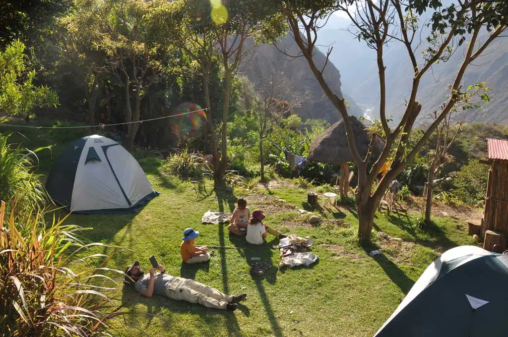 Après cela, il a fallu refaire tout le chemin en sens inverse. Après une seconde nuit à Marampata conclue par un petit déjeuner à 6h du matin, nous sommes redescendus jusqu’à l’Apurimac et avons commencé l’ascension sur l’autre versant mais nous sommes arrêtés en milieu de journée pour faire étape à Chiquisca, trempés de transpiration et poussiéreux. Nous nous sommes posés tout l’après-midi les fesses sur une terrasse herbeuse avec vue imprenable sur le fleuve, à se reposer à l’ombre, à papoter, dessiner, lire et profiter de notre chance d’être là !